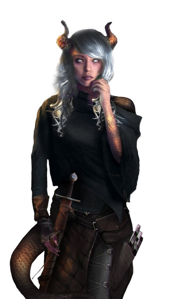 Sie nannten sie Púki, was im Grunde nichts anderes heißt als ‚Dämon‘. Im Laufe der Zeit änderte sich der Name ein paar Mal. Heute lebt sie unter dem Namen Tharlesa Talvis. Ihre Geschichte ist tragisch, wie die Geschichte der meisten Tieflinge.